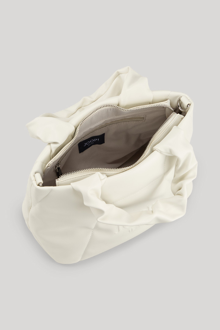 Torba Lusinga Quinta ma oryginalną, obszerną formę z watowaniem i ozdobnymi, asymetrycznymi przeszyciami. Całości dopełniają nowoczesne, marszczone rączki i wytłoczone logo. Ten dodatek ma zapięcie na zamek oraz regulowany pasek na ramię. Dostępne dwa różne rozmiary.