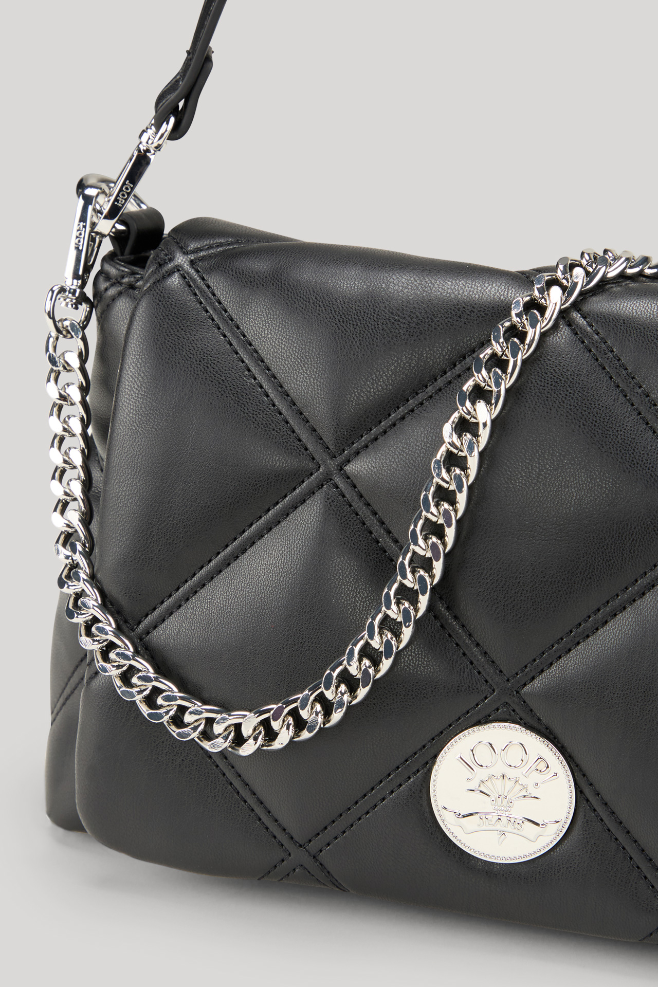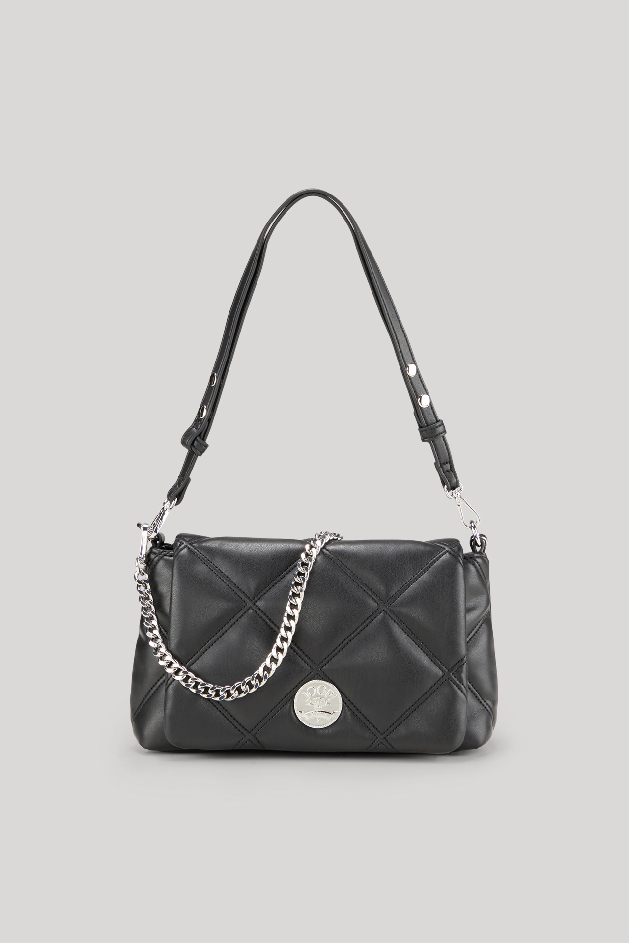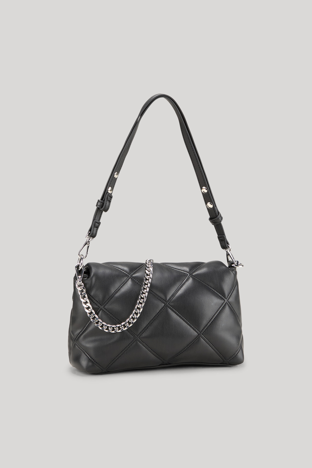Torebka na ramię Confetto Solar to dodatek w stylu glamour. Wyróżnia ją duże pikowanie w romby oraz dwa wyrafinowane paski na ramię, z atrakcyjnymi akcentami w postaci nowoczesnego łańcuszka i metalowych elementów z wytłoczonym logo. Całość dopełnia metalizowana plakietka w stylu jubilerskim z przodu.